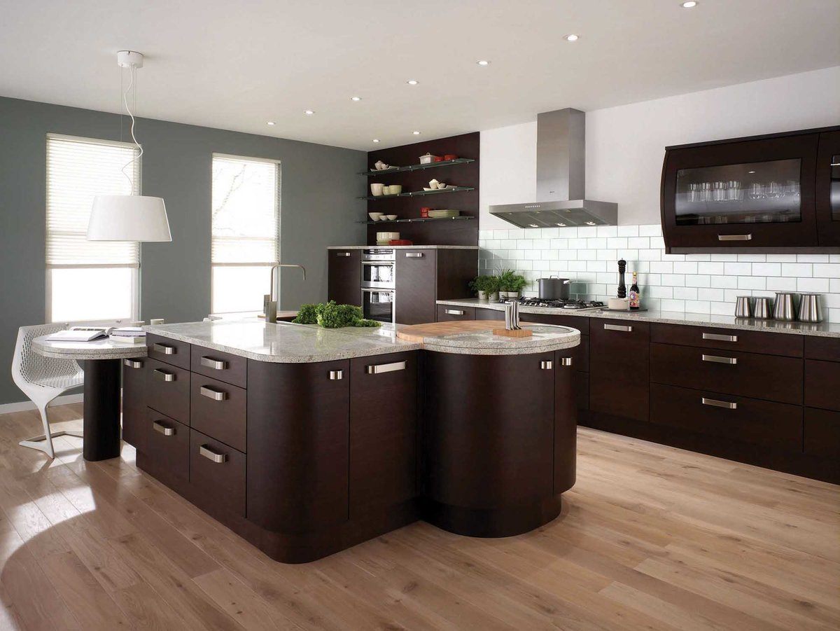 - Островной гарнитур – один из наиболее функциональных и эргономичных моделей для просторной кухни. Остров может быть традиционным – прямоугольным, квадратным, дополненным барной стойкой. А может быть и оригинальным – в виде носа корабля, полумесяца, трилистника и т.д. Здесь фантазии просто нет предела: применимы самые неожиданные дизайнерские решения.