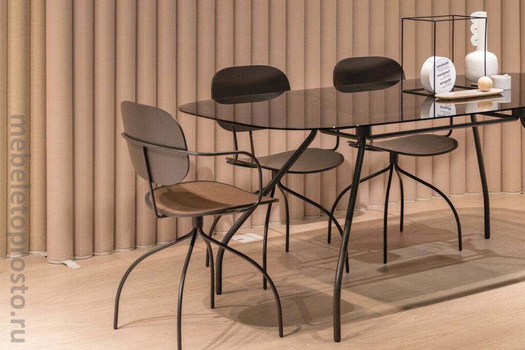 - обеденные столы (интересно смотрятся со стульями с элементами дерева или металла).