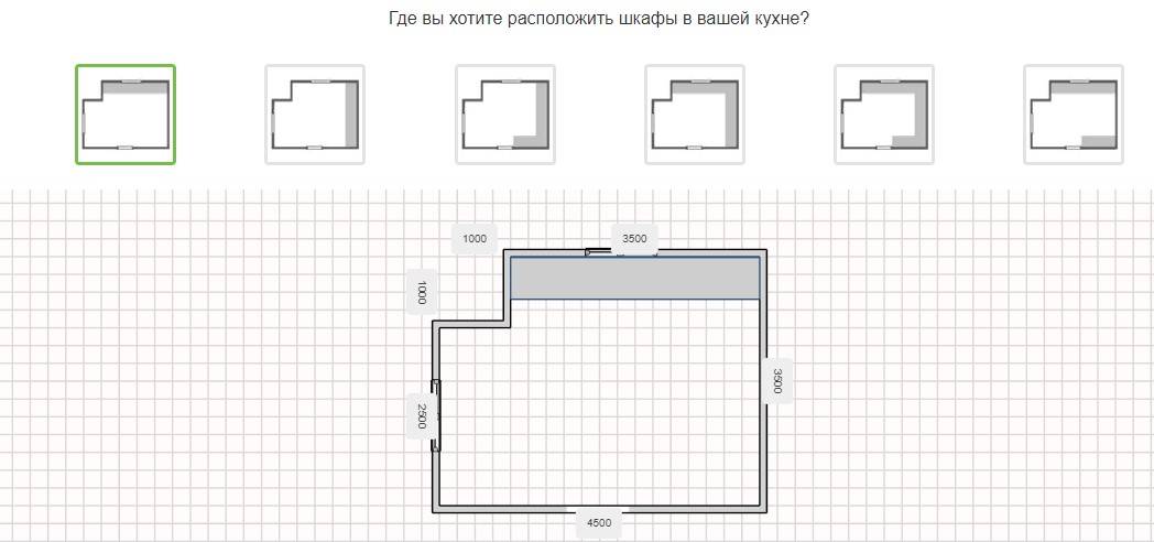 После этого необходимо выбрать расположение гарнитура. Система предлагает несколько вариантов на выбор.