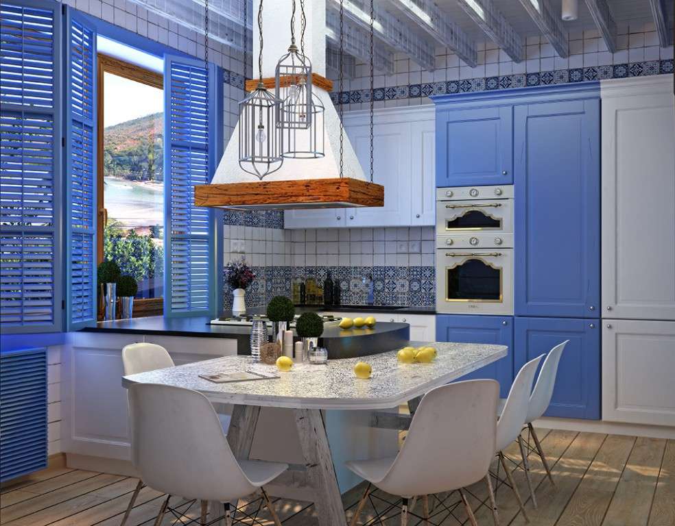 Люди, убежав на побережье от шума, бешеного ритма и многочисленных условностей большого города, стремятся к простоте во всем, прежде всего, в оформлении интерьера. Они хотят заниматься любимым делом, например, экспериментировать в приготовлении блюд, хотят принимать гостей, подолгу, не спеша. Со вкусом вести долгие неторопливые разговоры за столом. Для этого нужно много пространства и особая обстановка. Все это отразилось в особенностях кухонь и гостиных, сформировав так называемый средиземноморский стиль.