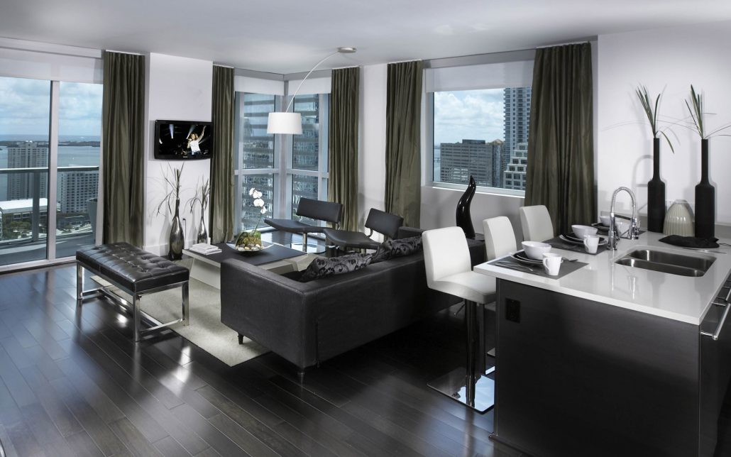 Особенно важно продумать цветовое решение для кухни небольшой площади, но и большую гостиную нужно организовать грамотно. Для этого выбирают любой из эффективных приемов: