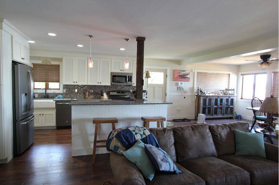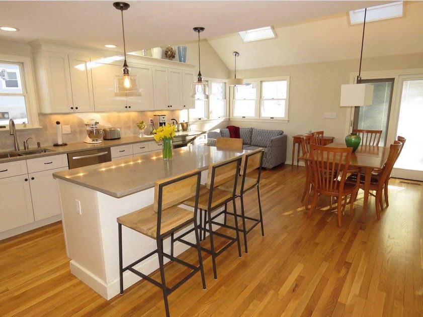 Данные конструкции в зависимости от габаритов могут удобно расположиться, как в небольшой кухне, так и стать центральным элементом в просторной кухне-гостиной, выполняя роль разделителя пространства.