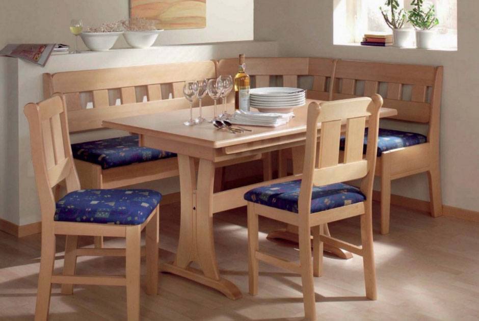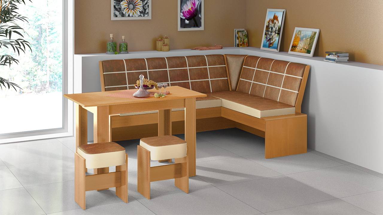 Кухонный угловой диван для маленькой кухни с комплектом мебели