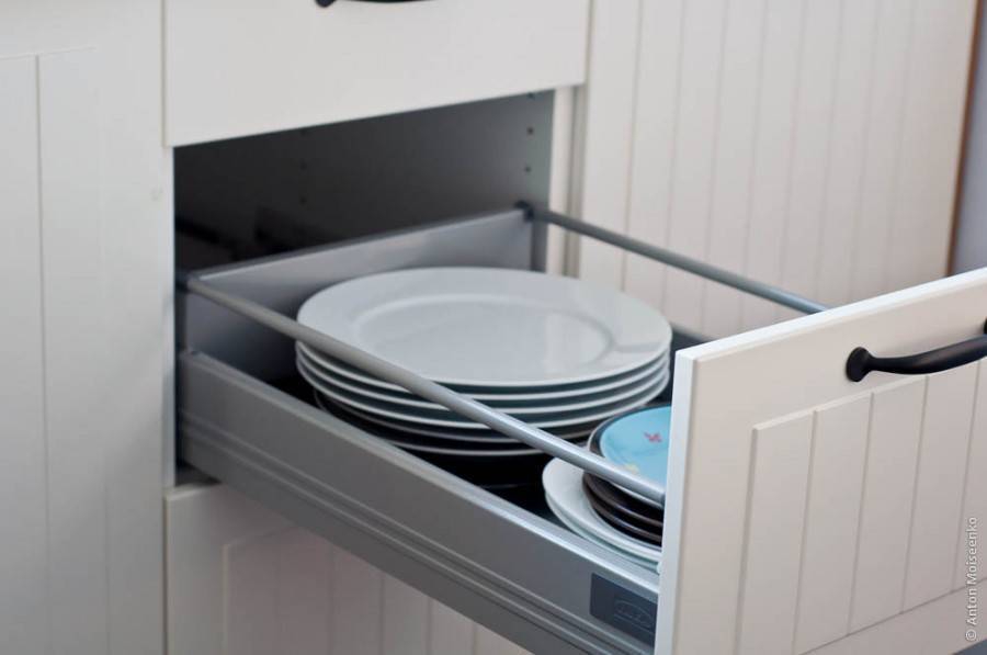 - Модули с выдвижными ящиками (в т.ч. под раковину). Выдвижной механизм – Максимера (подороже) или Форвара (подешевле).