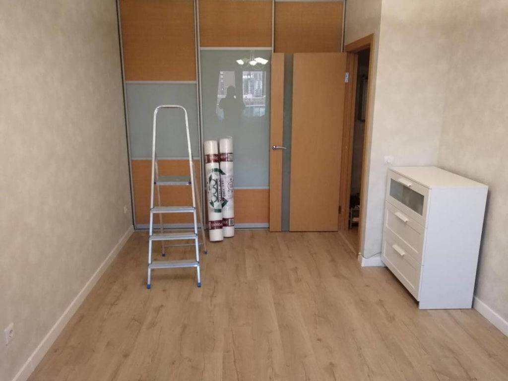 Классическая спальня с темно-серым ламинатом на фото расслабляет глаза. Красивое и презентабельное покрытие с глянцевым блеском станет хорошей основой в комнате для сна. Чтобы пространство не утонуло в сером цвете, надо одну стену оставить белой. В центре располагают яркий акцент – картину или подушку.