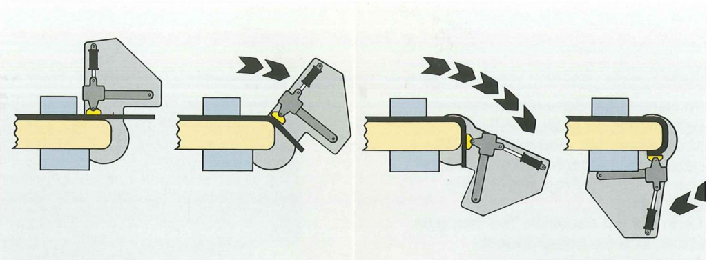 | Подача плиты в пресс. | Мультивакуумное устройство с переворотной планкой для укладки пленки. |