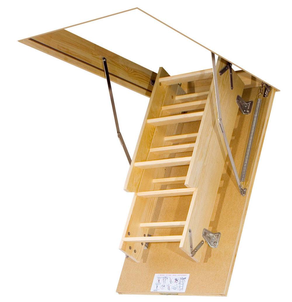 Складные лестницы, ведущие на чердак, состоят из нескольких секций. В сложенном виде такая лестница занимает больше места, чем выдвижная, однако все равно более компактная, чем стационарная. При эксплуатации лестниц используется ручная и автоматическая система раскладывания.