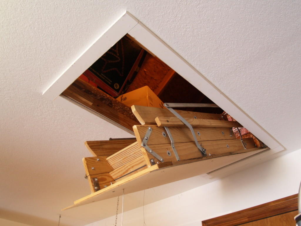 Раздвижная лестница на мансардный этаж в многоэтажном доме