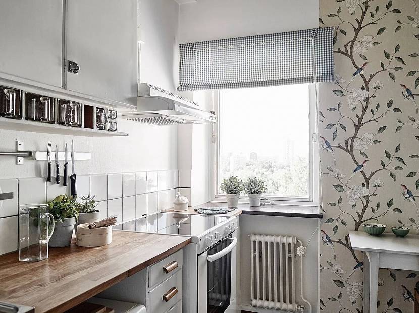 Интересные обои в интерьере утепленной кухниИсточник aqua-rmnt.com