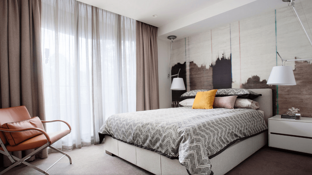 Преимущества данной ткани в качестве штор в спальню или гостиной: