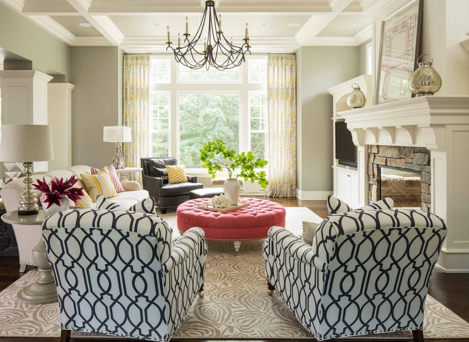 Гостиная без люстры – явление довольно редкое. Так оформляют залы в модных городских стилях – хай-тек, техно, лофт, где центр помещения не выделяют принципиально.