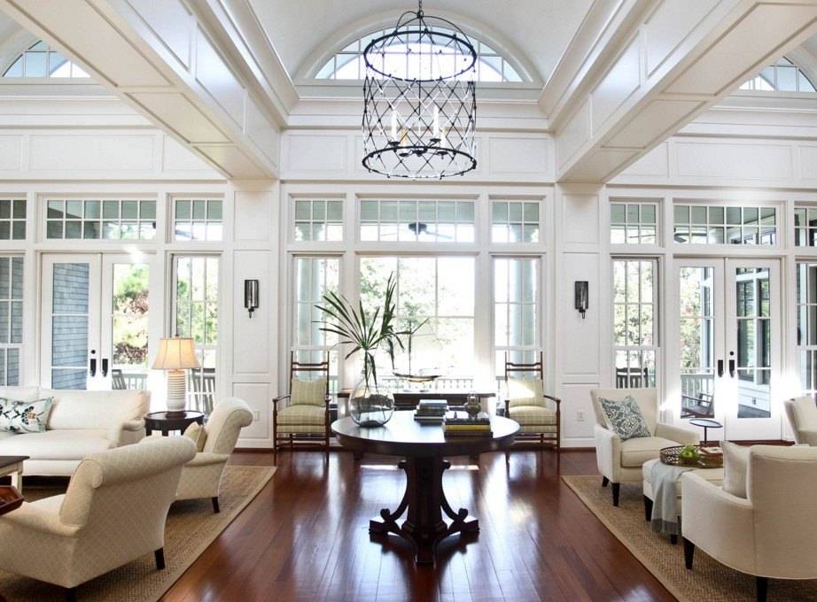 С помощью освещения можно экспериментировать с дизайном комнаты и оригинально оформлять интерьер. На представленных ниже фото – примеры использования люстр в помещениях различного функционального назначения.