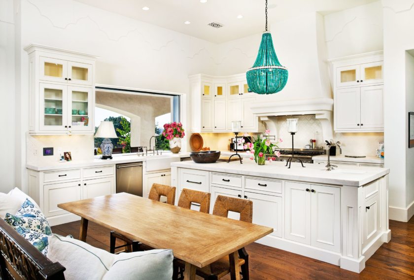 Люстра в такой кухонной комнате может, прослужит максимальный срок, и даже стать семейной традиционной реликвией.