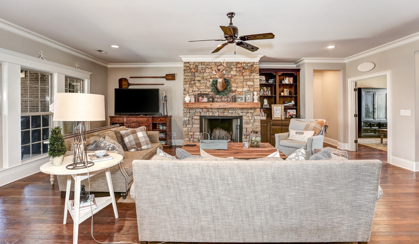 Для украшения комнаты следует использовать натуральные оттенки и материалы в виде камня либо дерева. Такой акцент соединяет гостиную с расположенной поблизости природой. В комнате будет органично смотреться: