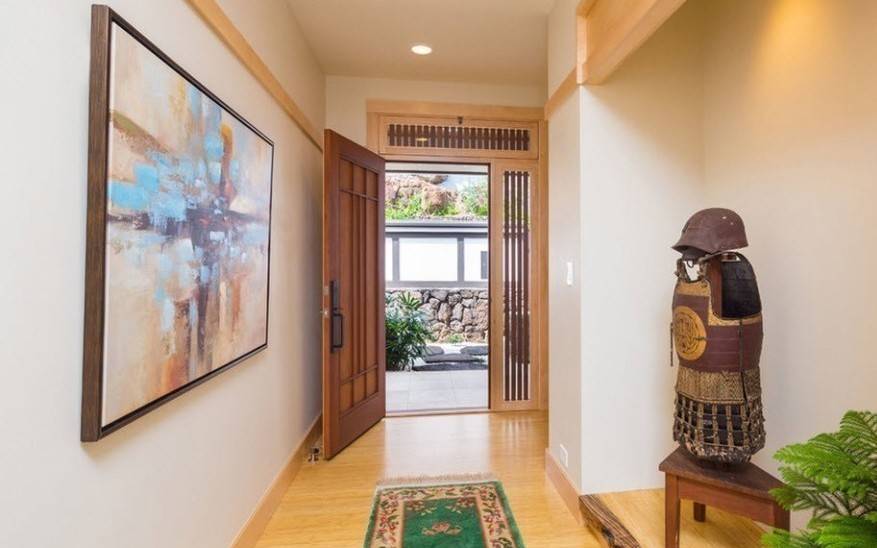 Также иногда вешают картины, делают драпировку из шелка или атласа. На пол кладётся ковёр ручной работы. Фарфор ставят не большие полки, а маленькие деревья или цветы с горшками – на пол.