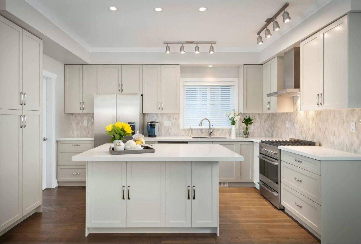 Стиль неоклассика не такой минималистичный, как предыдущие, но все же светлый и современный. Гарнитуры в этом стиле по большей части матовые, с красивыми фрезеровками: да, они не будут отражать свет, но и выглядеть громоздко также не будут — благодаря белому цвету.