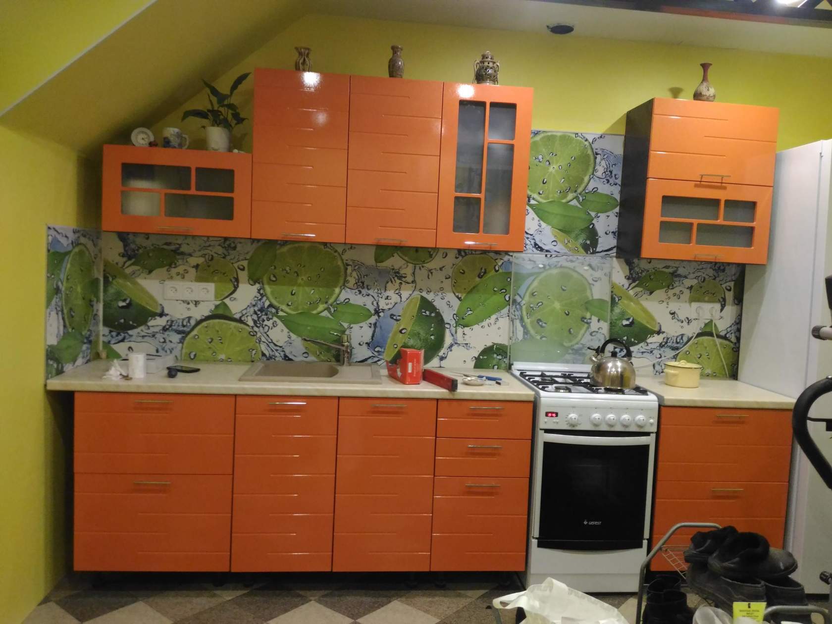 Совет! Если вы хотите сделать кухню уникальной, между столешницей и подвесными ящиками можно декорировать стену красивым и ярким рисунком или использовать скинали — стеклянные декоративные панели.