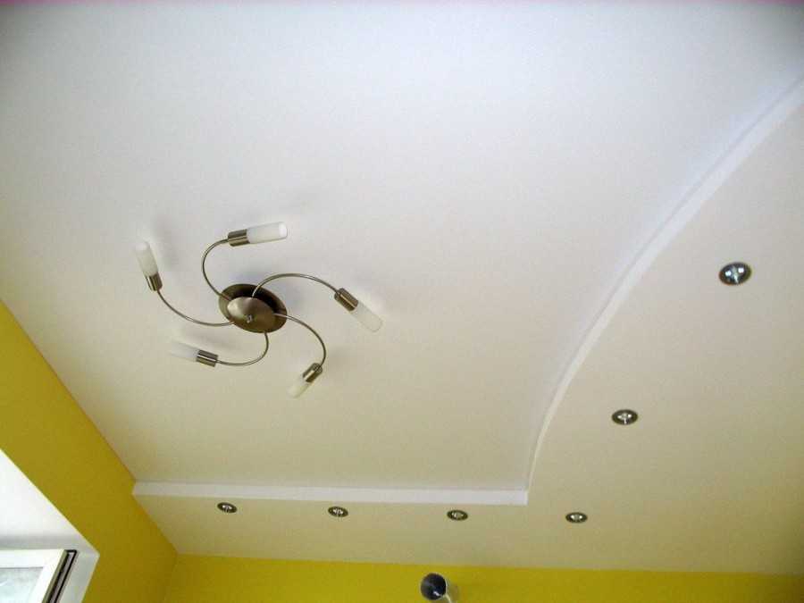 Гипсокартонный потолок можно сделать многоуровневым, арочным – зависит от желания. А еще его можно покрасить обычной краской, провести светодиодное освещение, и, в целом, недорогой потолок из гипсокартона весит немного, что тоже идет ему в плюс. Минусом гипсокартона является его высокая подверженность влаге – он будет коробиться. Поэтому на кухне и ванной отделывать потолки гипсокартоном совершенно не стоит.