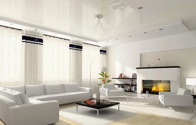 Если для вас гостиная – это место, где вы проводите тихие спокойные вечера с семьей, смотрите телевизор или читаете любимую книгу, то свой выбор следует остановить на сатиновых или матовых натяжных потолках. Если же в гостиной вы часто встречаете гостей, устраиваете разнообразные вечеринки, то обязательно нужно выбрать глянцевый потолок, он создаст дополнительную нотку праздника.
