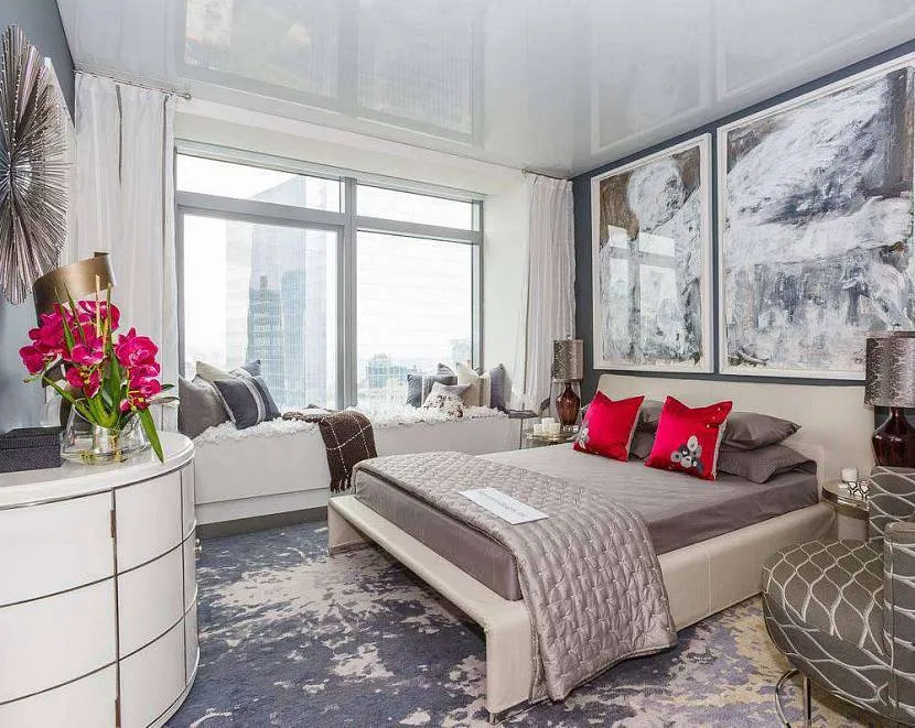 В спальне – только матовые потолки, по причине озвученной выше. Любой свет с улицы, свет фонарей и фар – всё будет отражаться прям на вашу кровать и тем самым мешать спать. Или читать, лёжа на кровати.