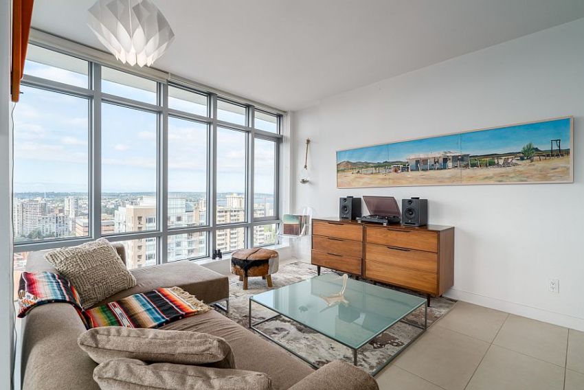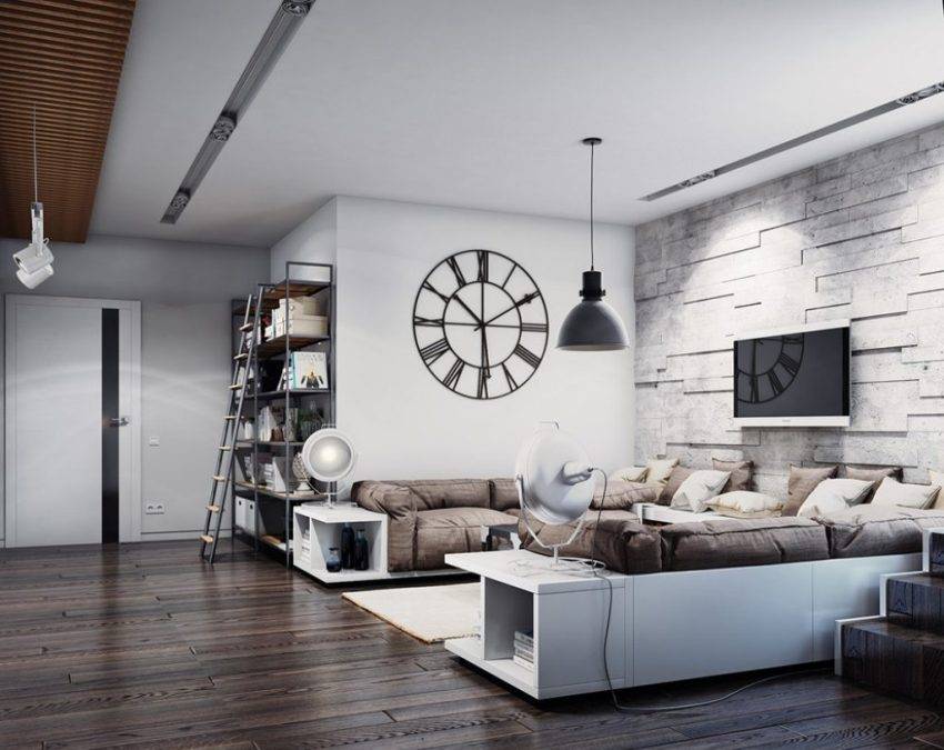 Это, наверное, самый трендовый стиль в настоящее время. На фото дизайна гостиной он легко отличается от всех остальных благодаря: