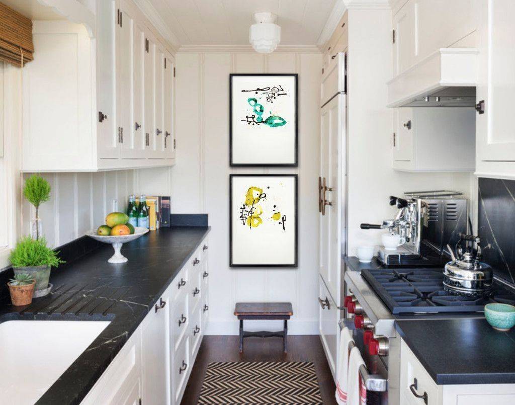 Он прекрасно подходит для длинных кухонь, особенно для проходных. Но если ваша проходная кухня слишком узка — ограничьтесь линейной планировкой у одной стены. Иначе вы будете постоянно стоять у кого-то на пути. Если же вы всё-таки решили делать двухрядную параллельную планировку, убедитесь в том, что ширина помещения достаточна, у шкафов беспрепятственно открываются створки, а у вас будет достаточно пространства для маневра. Желательно, чтобы у вас оставался проход хотя бы в полтора метра.