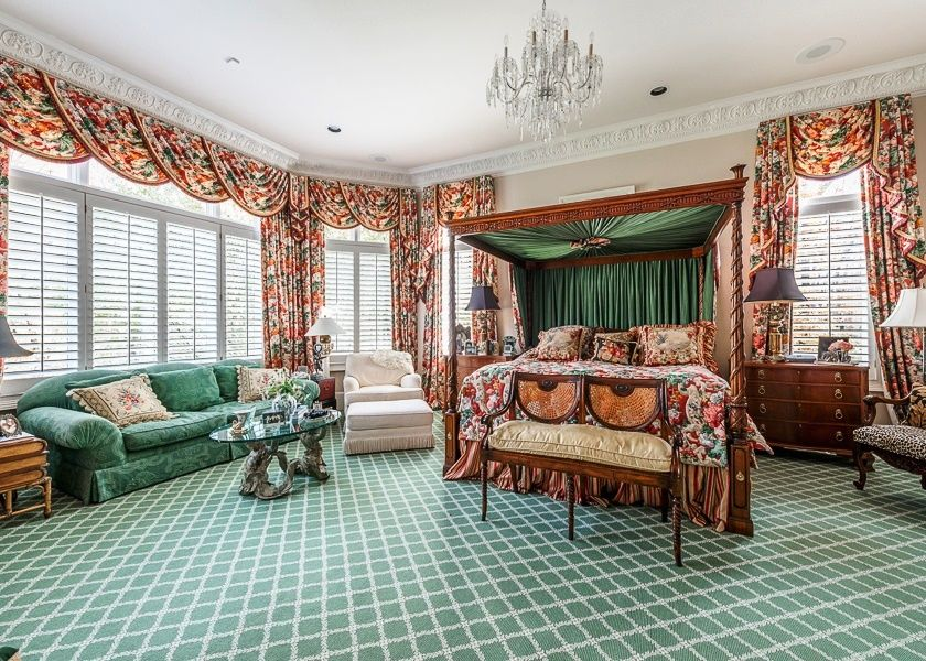 Хрустальные вазы, скульптуры, зеркала, обрамлённые в золочёные рамы, настенные часы, картины и прочие детали интерьера отражают средневековый или более поздний период, к которому относится классический стиль. В такой спальне нет места пустоте и минимализму.