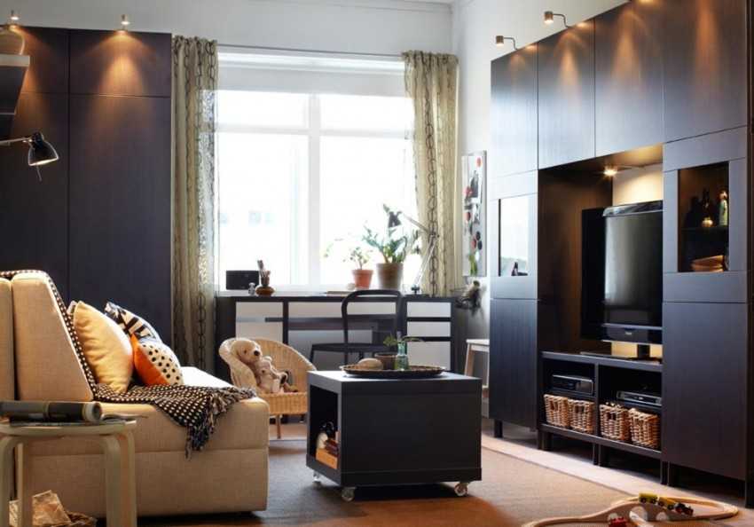 Отличным вариантом для обустройства малогабаритных помещений являются модульные стенки. Отдельные модули можно разместить в любом порядке, это поможет более рационально, с пользой использовать пространство комнаты.