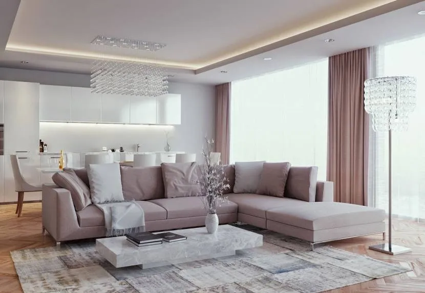 Светло-бежевый диван прекрасно дополнит современный интерьер