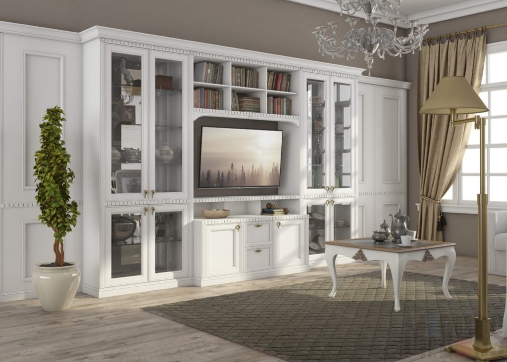 Подбор подходящей стенки для обустройства среднегабаритной и крупногабаритной гостиной