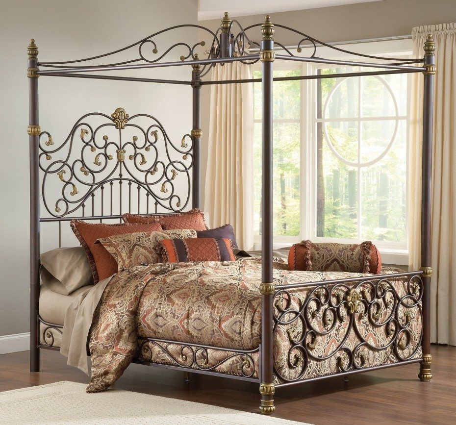 Кованая кровать с балдахином прекрасно впишется в спальню венецианского стиля
