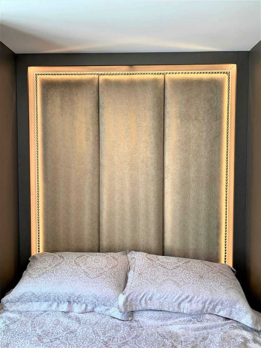 В изголовье кровати вмонтированы системы для хранения вещей