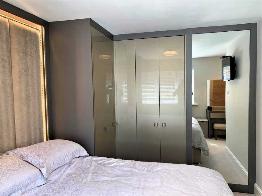 Угловой шкаф ставят в угол, ближайший к изголовью кровати;