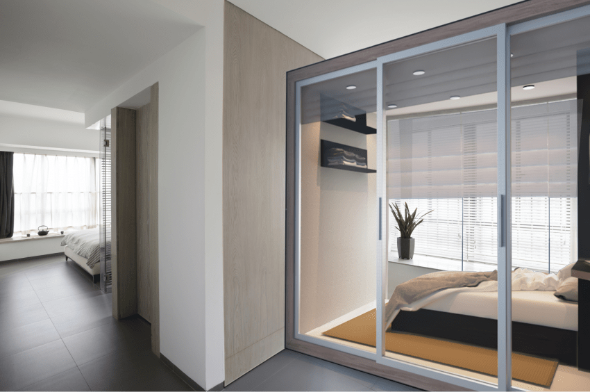 Оптимальный вариант — установка раздвижной перегородки, ширмы или стеллажа с открытыми полками.
