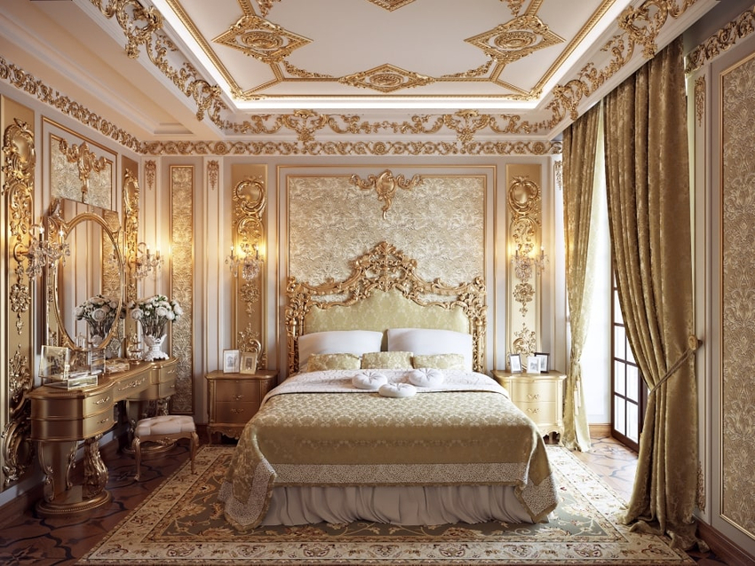 Создать спальню в духе барокко удастся только в просторном помещении.