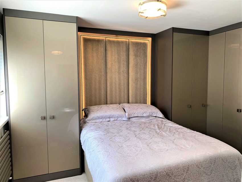 освещенность — определитесь, нужны ли дополнительные источники света для комнаты. Если ответ утвердительный, то выбирайте модули с возможностью встраиваемой подсветки. Она понадобится внутри гардеробной системы, на изголовье кровати, а также под полками;