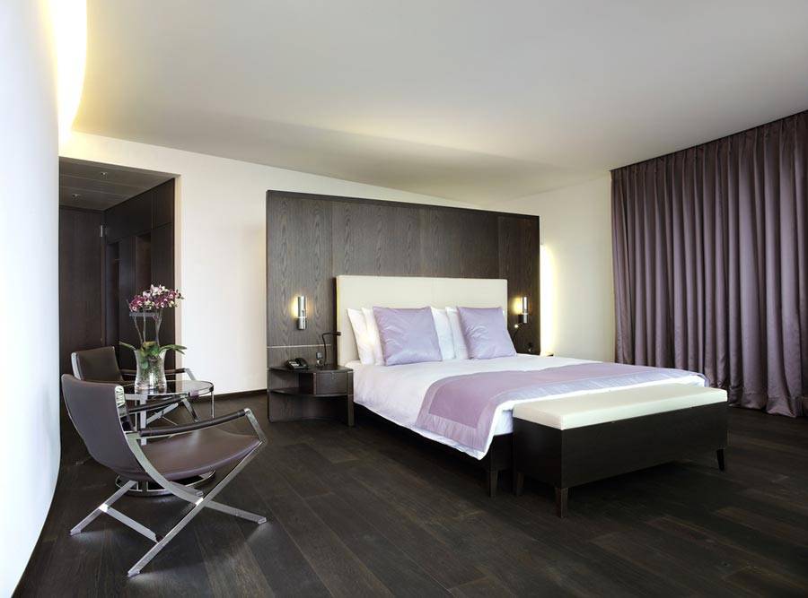 Центральное место по праву принадлежит кровати, вокруг неё строится вся идея оформления. В её расположении надо соблюсти некоторые правила:
