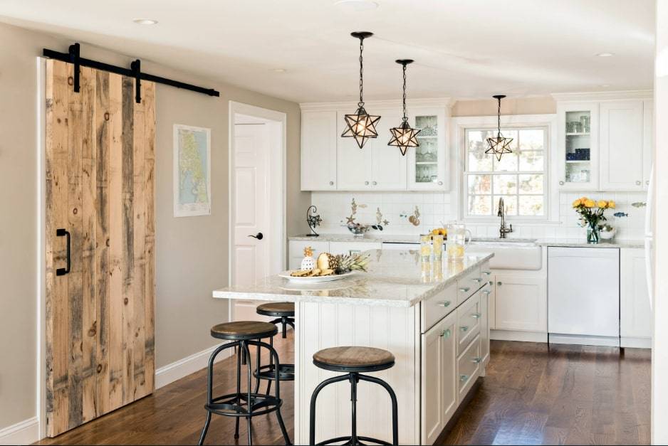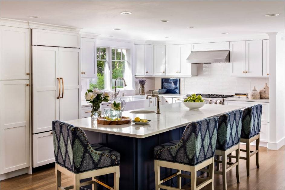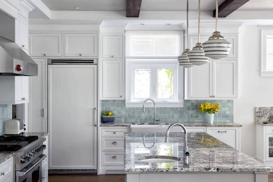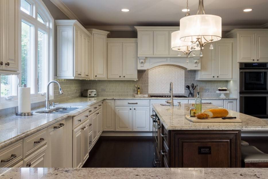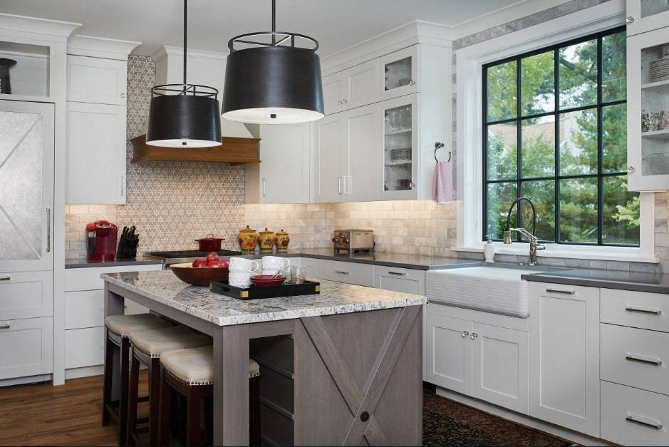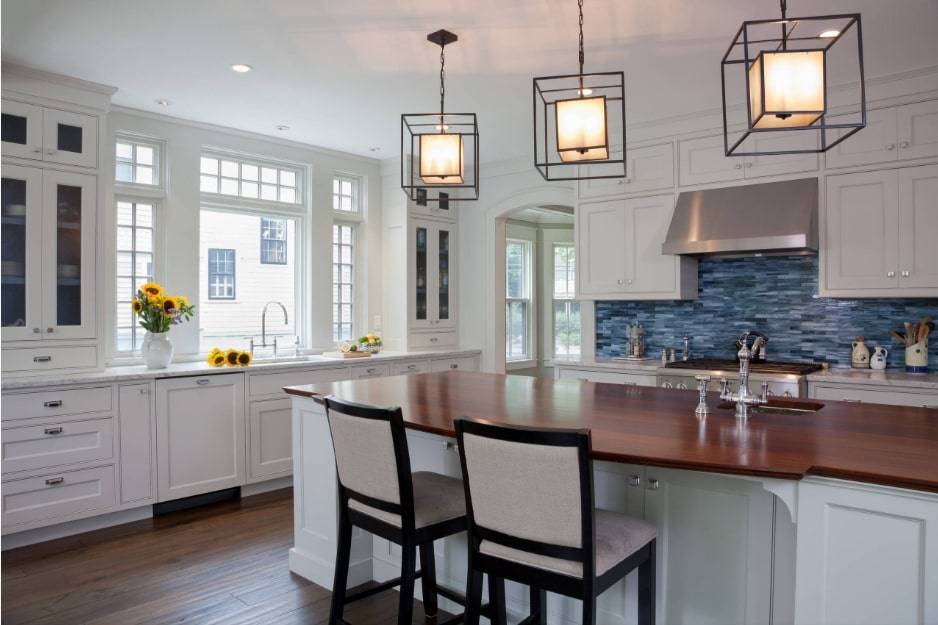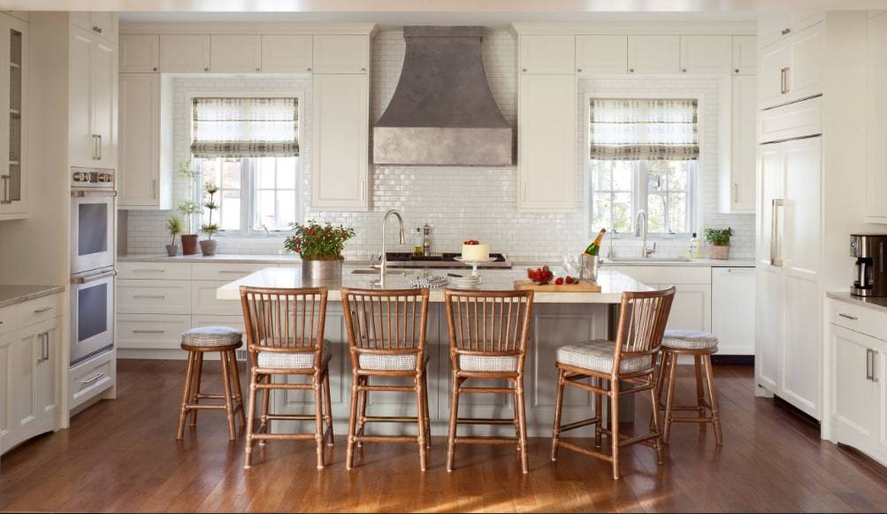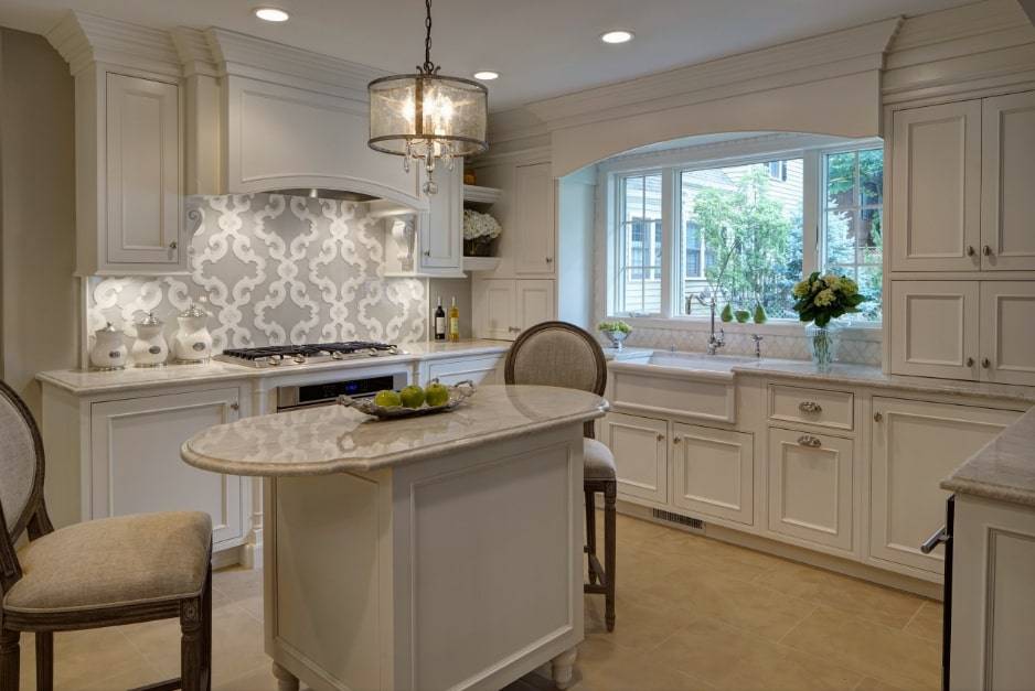 Есть дизайны, которые предполагают белые или кремовые кухонные шкафы и простые архитектурные детали. Такие элементы, как освещение, мебель и декор способны придать классической кухне больше индивидуальности.