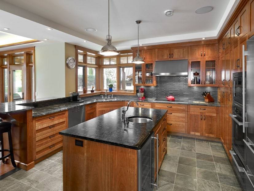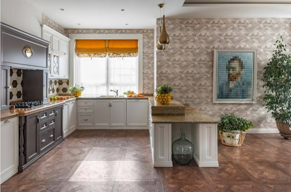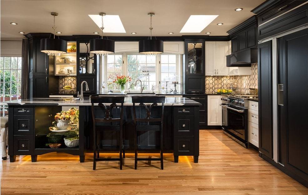 Традиционная большая кухня — это баланс и симметрия. При ее оформлении могут использоваться самые разнообразные стили и цветовые решения.