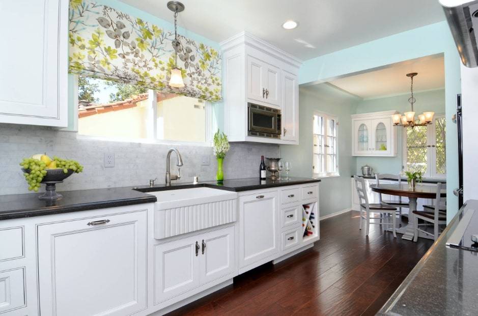 В продаже представлены, в основном, образцы белого цвета. Это классика. Если потрудиться, то можно найти изделия и других оттенков. Подбирайте оттенок в тон столешнице, фартуку или иным значимым элементам кухонного интерьера.