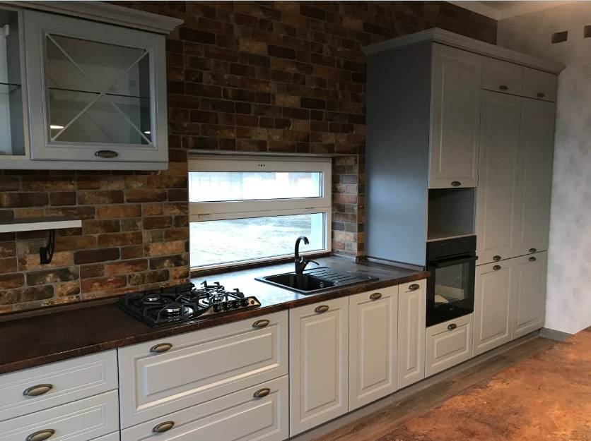 Кухня с мойкой под окном всегда смотрится намного более привлекательно. Тем не менее, данное решение достаточно сложное, требующее больших затрат и немало времени на реализацию. Поэтому рекомендуем все взвесить прежде, чем принять окончательное решение.