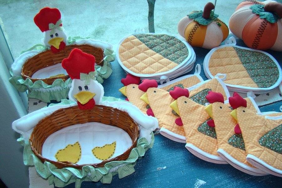 - создание текстильного декора в виде скатерти, накидок для стульев, прихваток, занавесок на окна, панно в стиле пэчворк;