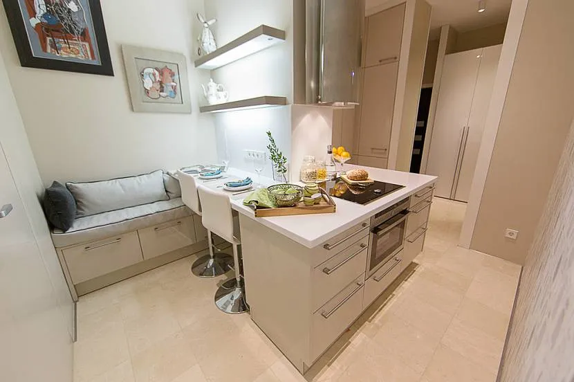 Идеально подходит для небольших помещений, например, малогабаритной кухни либо студии небольших размеров.