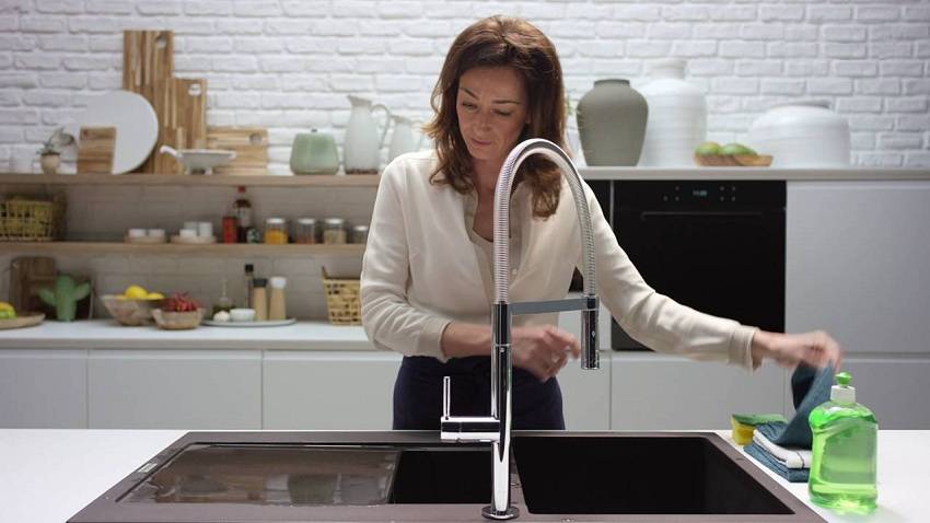 После мытья посуды и чистки рекомендуется насухо протирать мойку. Это предупредит образование извести и поможет вовремя заметить пятна.