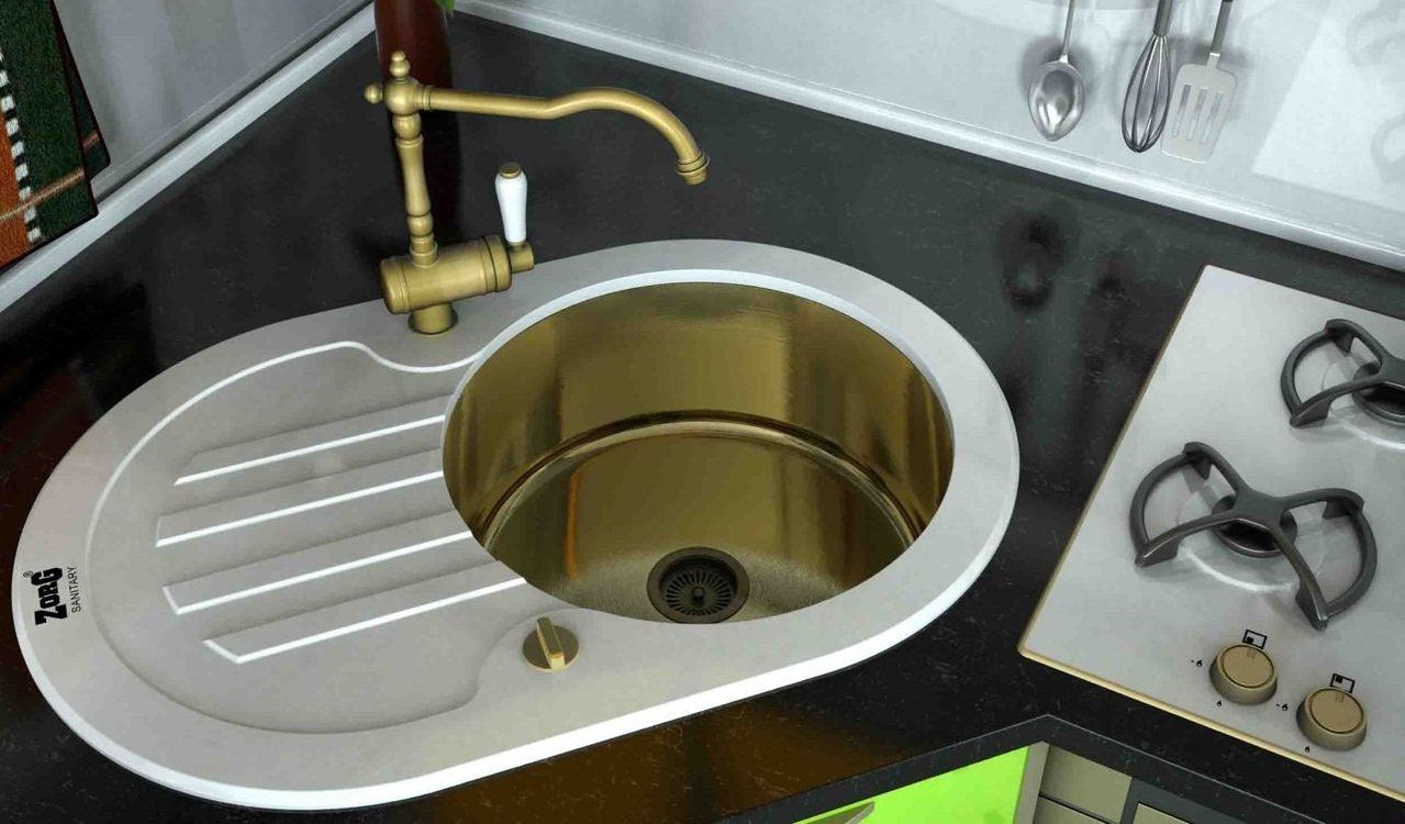 Совет: для очень маленькой кухни возьмите мойку меньших размеров и компенсируйте размер глубиной чаши.