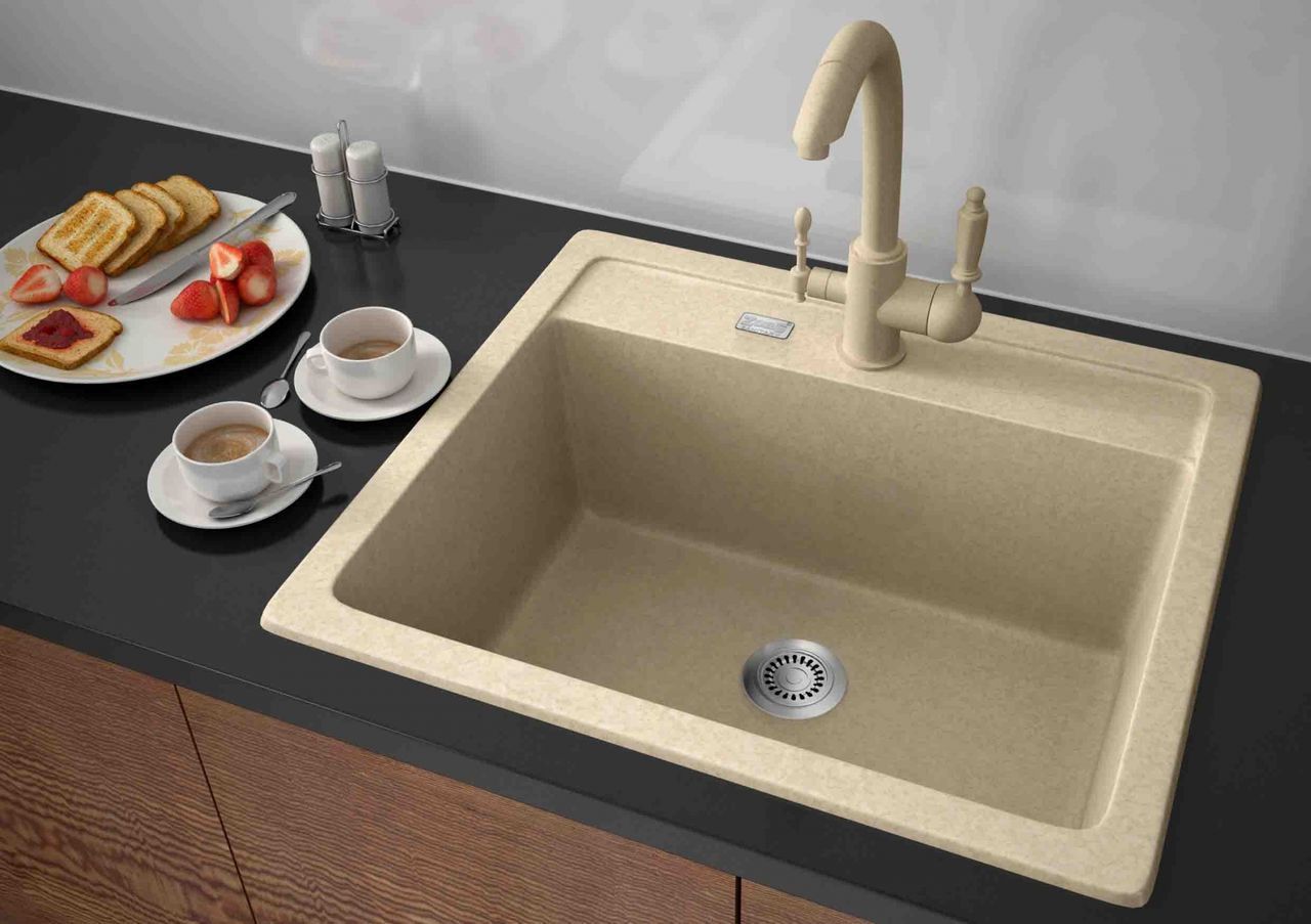 Такие раковины легки в уходе, гораздо менее шумные, чем мойки из нержавеющей стали, хорошо выглядят, износоустойчивы, ударопрочны, могут быть выполнены в 10 цветах, а значит можно подобрать раковину, близкую по цвету к столешнице.