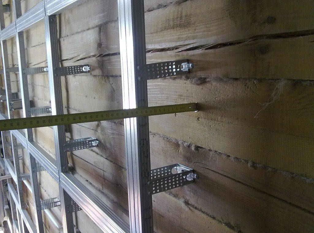 Для этого нужны уже готовые элементы направляющие UD профили и стоечные CD. По стоимости металлические «детали» каркаса обойдутся дешевле в сравнении с качественными деревянными рейками. В видео показано как монтировать металлический каркас на стены из бруса.