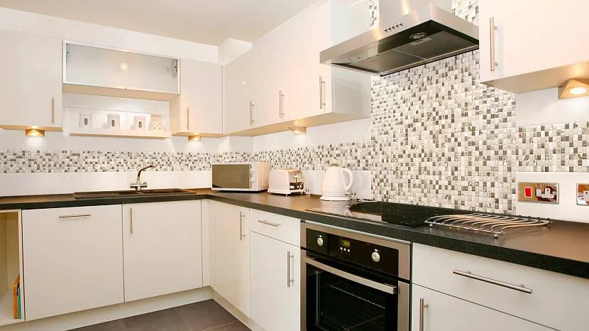 Кухонный фартук представляет собой пространство стены между навесными шкафчиками и рабочим столом.