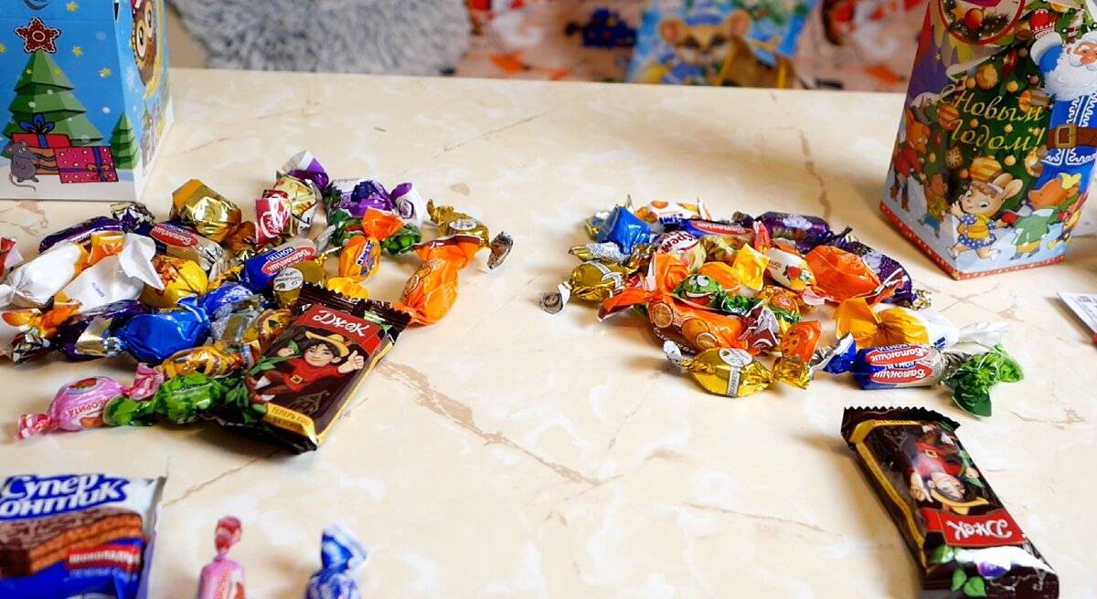 А в наборе из Магнита конфеты скорее обычные, много желейных конфеток.