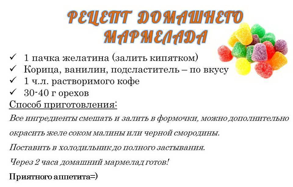 Следующая очередная безопасная сладость – это мармелад. Но мармелад не любой, а ДОРОГОЙ. С мармеладом действует такое правило: чем дороже, тем лучше! Это связано с тем, что в мармеладе самое дорогое вещество – это желирующий агент (желатин, пектин, агар агар, каррагинан и другие). Чем больше этого вещества производитель использовал при изготовлении мармелада, тем более плотной и твердой консистенции он выйдет. Именно по этому признаку и можно определить перед вами хороший и дорогой мармелад или «так себе».
